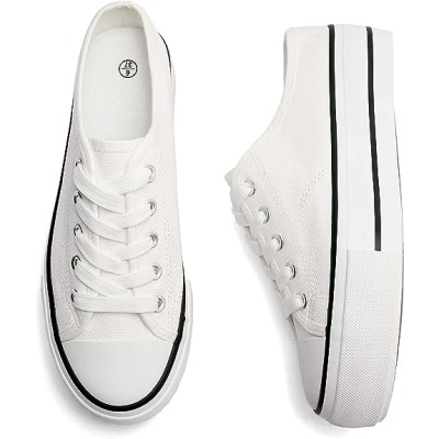 HYPOCRUTE Womens Canvas Mules Platform Sneakers Backless Slip on Shoes Summer Shoes