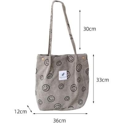 GESALOP Vintage Corduroy Tote Smiley Face Bag Aesthetic Stuff School Cute Tote Teen Girl Fashion Stuff,garbage Aesthetic