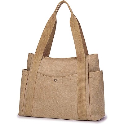 Canvas Tote Bag for Women Girl Canvas Shoulder Handbags Cute Large Purse with Button and Inner Grocery Bag