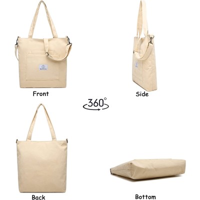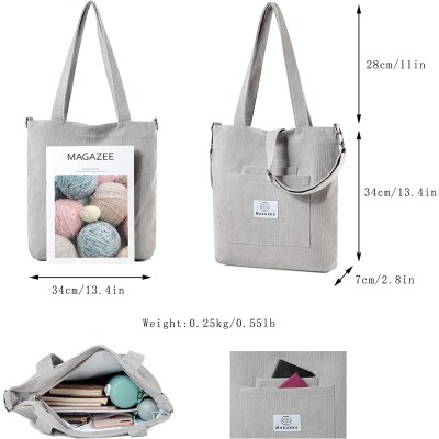 SHENHE Women's Corduroy Double Handle Big Canvas Shoulder Bags Tote Handbags with Pockets