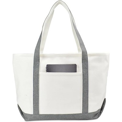 DALIX 23" Premium 24 oz. Cotton Canvas Shopping Tote Bag (White)