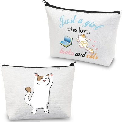 Just a Girl Who Loves Books and Cats Gifts Makeup Bag Cat and Book Lover Gift Funny Reading Gifts Cosmetic Bag