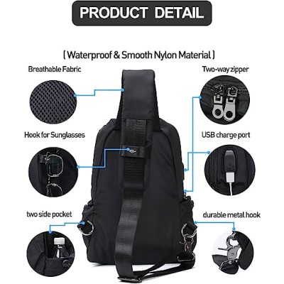 SEAFEW Small Black Sling Crossbody Backpack Shoulder Bag for Men Women, Lightweight One Strap Backpack