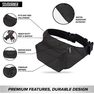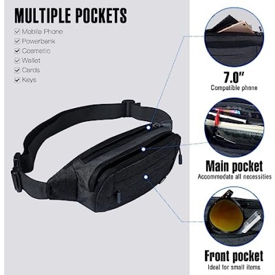 Large Fanny Pack for Women Men - Syican Waist bag with 4-Zipper Pockets, Gifts for Enjoy Sports Traveling Workout